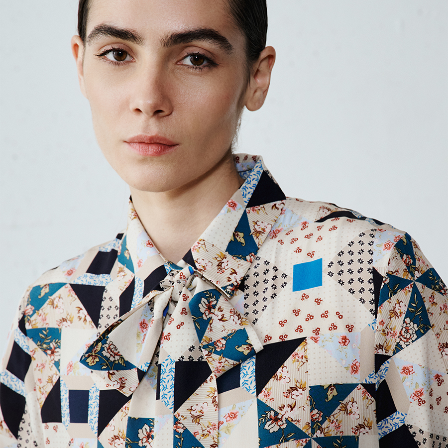 Check is reinvented through patchwork prints and foulard-inspired graphics.