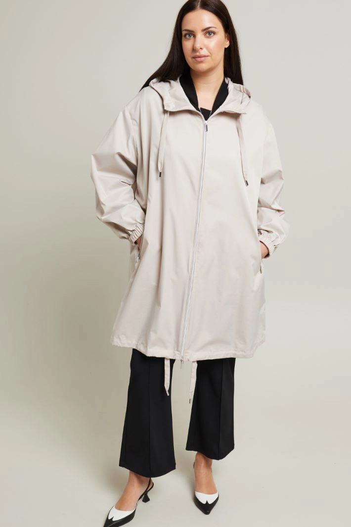 Straight-fit taffeta parka with a drawstring hood and long sleeves with cuffs. Zip pockets. Zip fastening.
