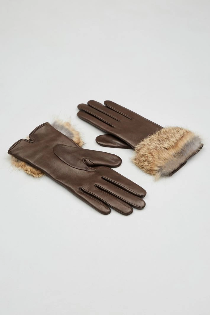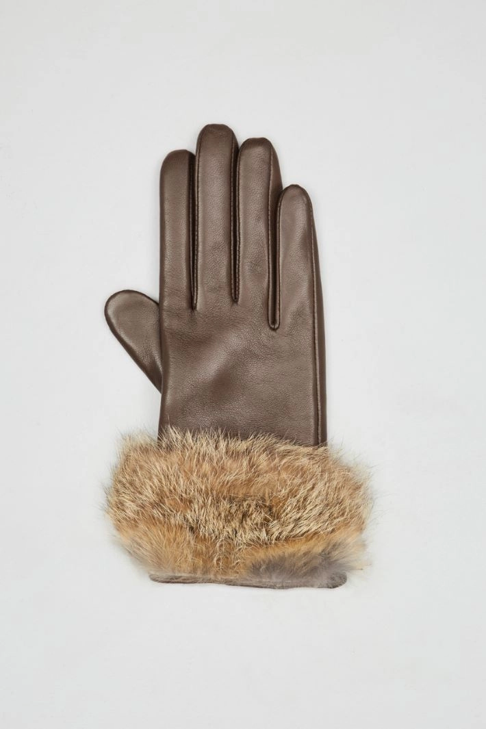 Gloves in real leather, with fur trim and interior lined in pure wool.