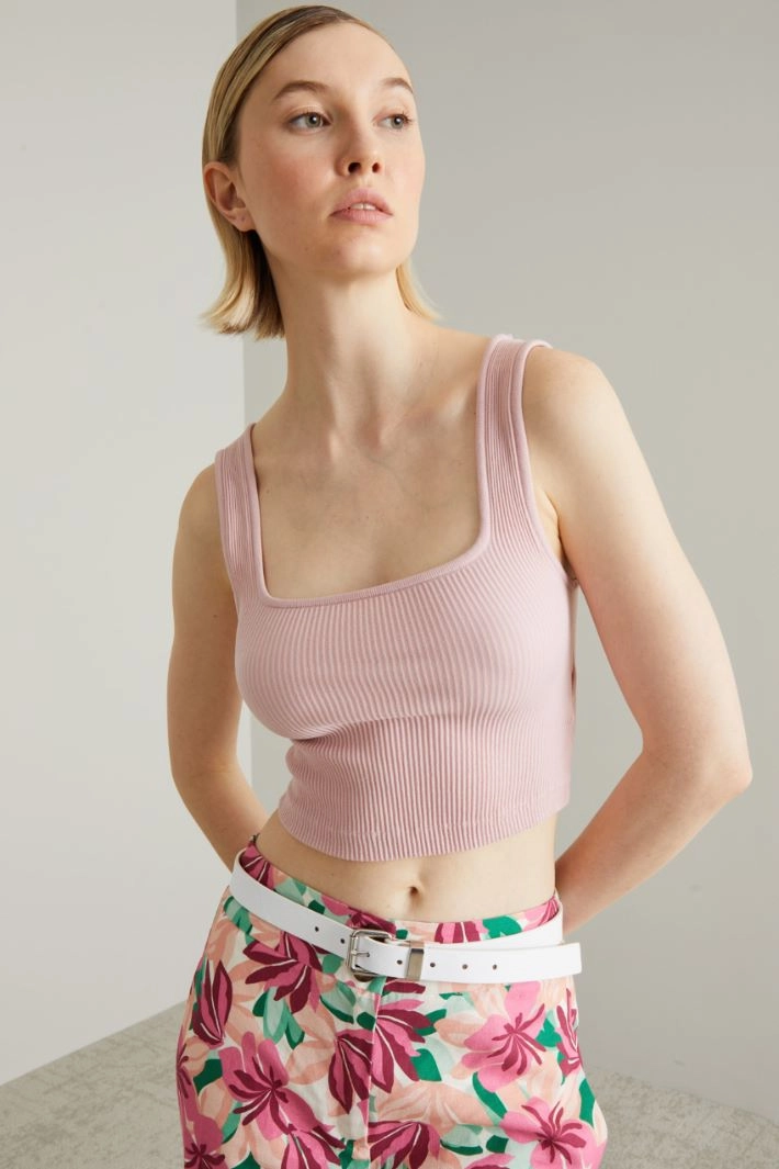 Cropped rib-knit top
